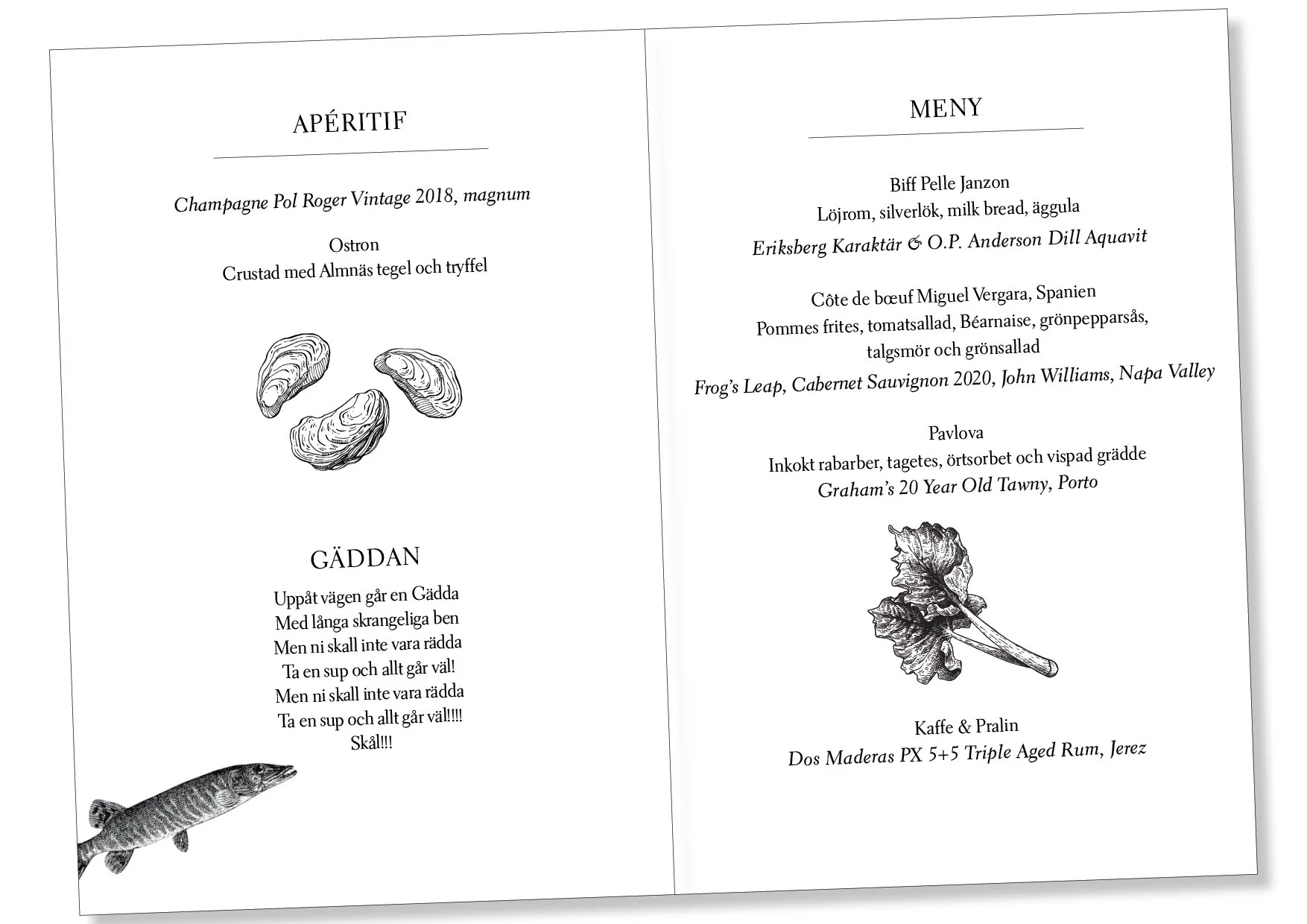 I den inre delen, som rymmer Tosto samlades, gästerna och det serverades lyxig Champagne Pol Roger Vintage 2018, på magnum och Fine de Claire-ostron samt en läcker krustad fylld med osten Almnäs Tegel och hyvlad tryffel.