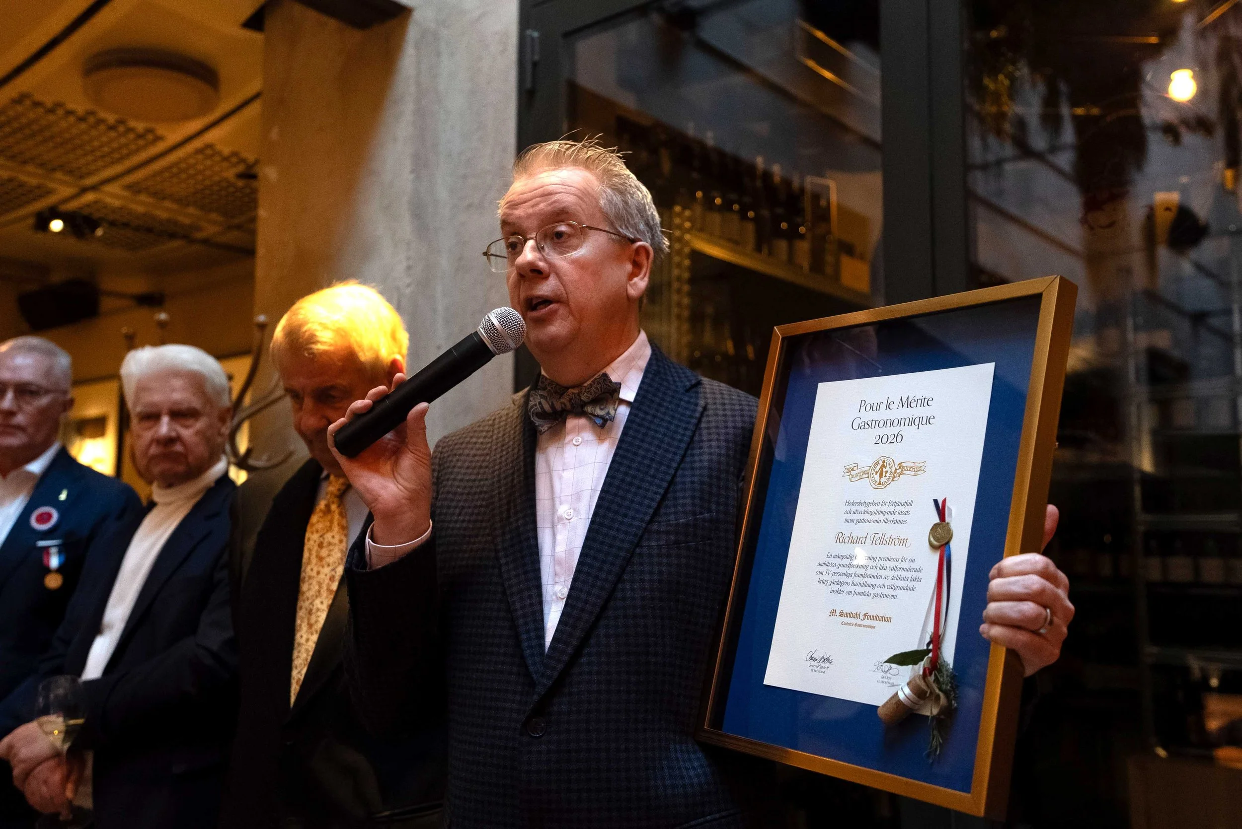 Diplom Pour le Mérite Gastronomique gick till Richard Tellström, docent och måltidsforskare, disputerad i måltidskunskap i Grythyttan och välkänd från TV och media presenterades av sin fadder Olle Lindberg. Richard tackade för uppmärksamheten och berättade ett av hans livs stora matuplevelser var då han som 15-åring kom till Paris första gången och på en liten sylta serverades baguette med dijonsenap för första gången. Han avslöjade att han fortfarande är storkonsument av Moutarde de Dijon, alltid i stora burkar!