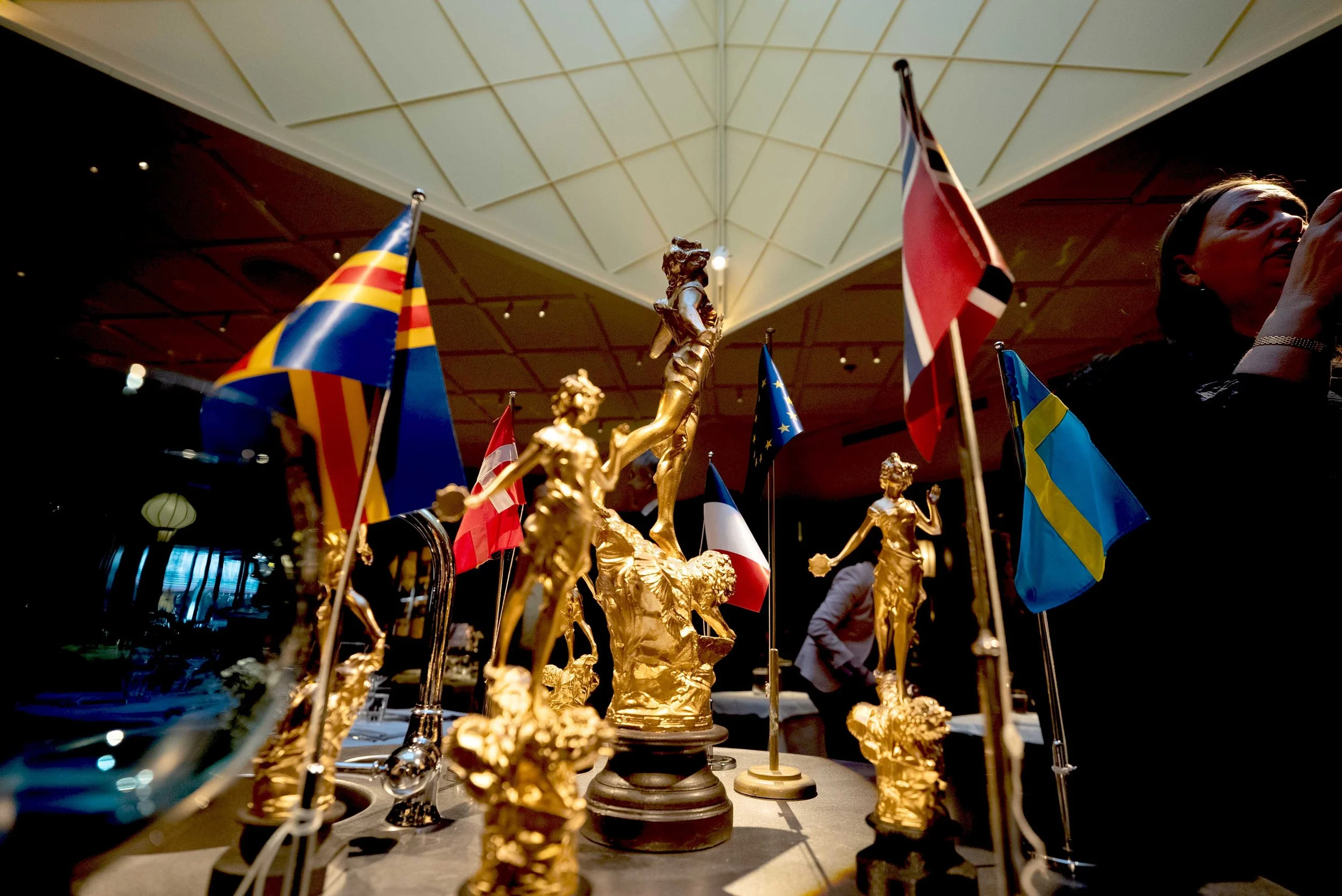 Ceremonimästarna Per Nordlind och Jimmie Rundqvist hade placerat statyn La Dance och hennes småsystrar statyetterna mitt i den eleganta matsalen där de strålade i kapp.